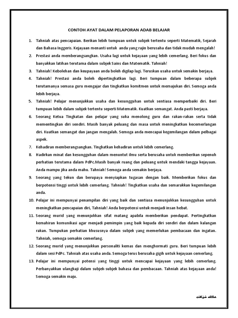 Senarai contoh ayat ulasan yang boleh diisi dalam buku laporan prestasi murid fafa01 com 看頭條. Sebagai pemilik bisnis Anda tentu memiliki hari yang sibuk. C Muhammad Naufal Arifiyanto SH MH.